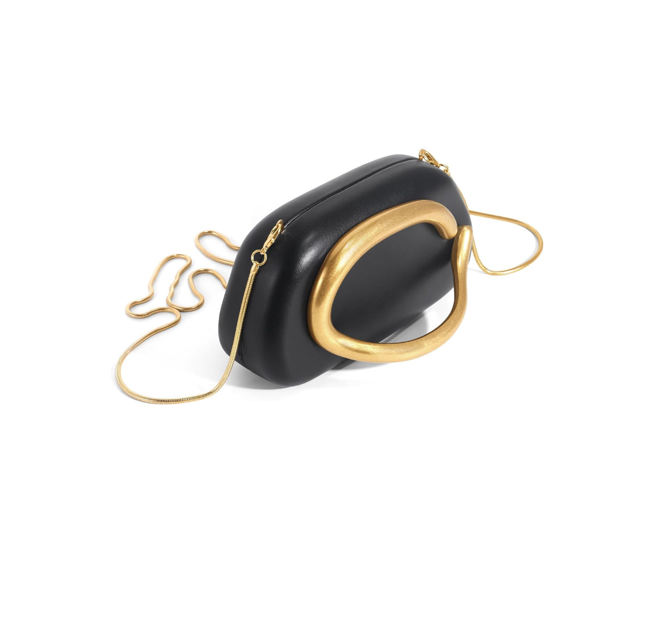 This stylish clutch is crafted from high-quality, water-resistant acrylic, boasting a glossy finish and durable gold-tone hardware. Its polyester lining ensures longevity, while a secure magnetic clasp keeps your belongings safe. With its sleek, rounded silhouette and unique gold C-shaped detail, this clutch radiates elegance and sophistication.